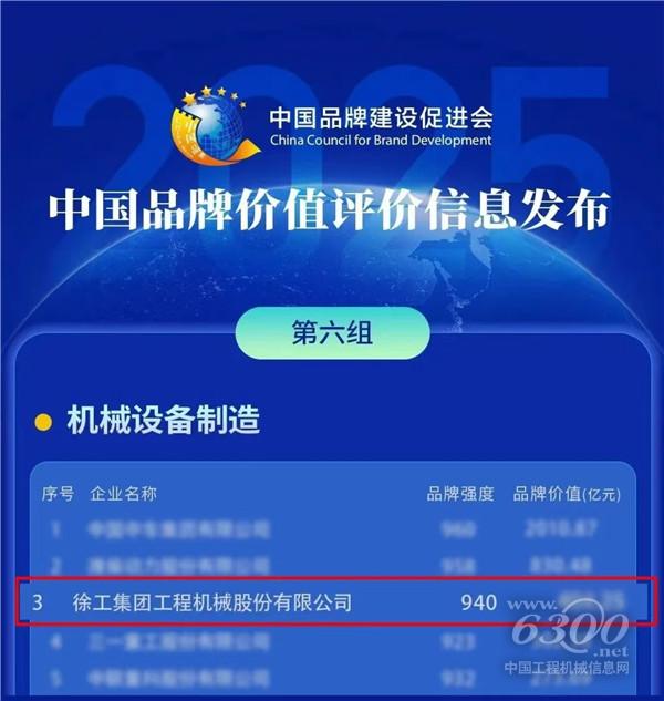 权威发布!徐工品牌价值,工程机械行业NO.1!