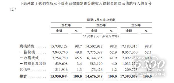 招股书显示,潍柴雷沃2023年收入有所下滑,主要是因为收获机械销售收入减少。2024年收入重新增长,则主要是因为拖拉机、收获机械以及农机具等销售收入增加。