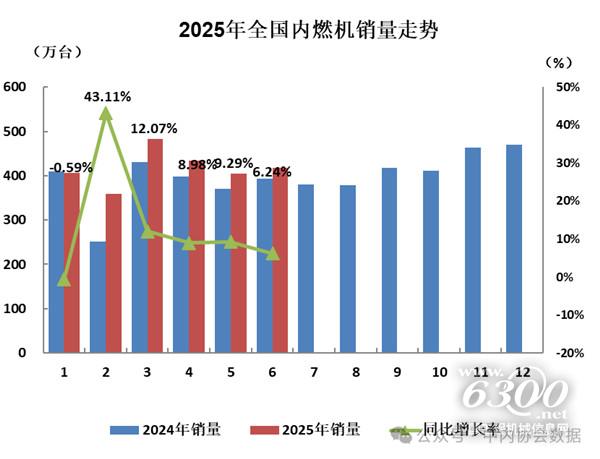 2025年6月内燃机行业整机销量环比增长,同比增长;上半年累计销量较上年同期增长超10%。今年以来,我国出台实施的各项积极的宏观政策,推动经济稳定高质量发展,经济总体保持平稳增长,社会信心持续提振,内需潜力加快释放,外需市场更加多元化,内燃机整机市场较为活跃,销量同比及累计同比均呈增长态势。具体表现为:6月内燃机销量418.10万台,环比增长3.38%,同比增长6.24%;1-6月累计销量2518.49万台,同比增长11.75%。终端方面,乘用车市场延续良好态势,摩托车市场增长势头明显;商用车以及农机、工程等市场销量在缓慢恢复。