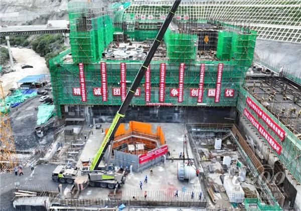 ▲中联重科起重机助力世界首台500兆瓦冲击式水电机组安装
