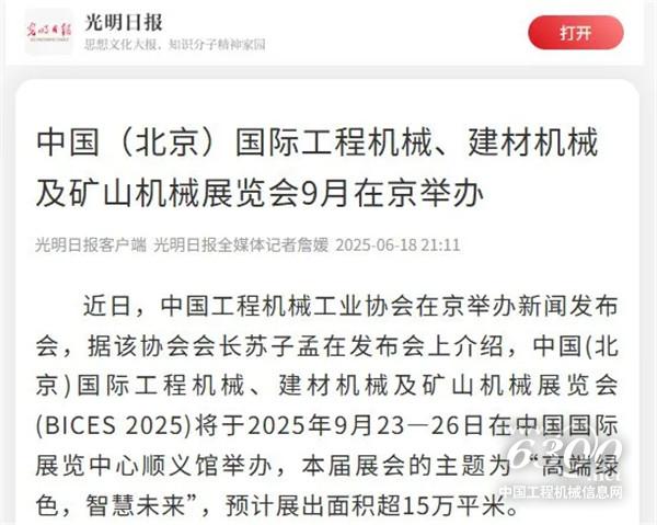 中国(北京)国际工程机械、建材机械及矿山机械展览会(以下简称BICES 2025)将于9月23—26日在北京中国国际展览中心顺义馆如期举办。作为全球具有重要影响力的高品质工程机械展会,BICES 2025不仅汇聚了近年来工程机械行业的创新发展成果,而且成为各相关主流媒体了解工程机械行业高质量发展情况的高品质平台。因此,BICES 2025自筹备以来,受到了各主流媒体的积极关注和持续报道。在展会工作进入最后冲刺阶段,吸引了多家主流媒体,一些媒体表示重点部署力量,准备对这场行业盛会进行深入和重点报道,有的表示通过图文、视频、直播等多种形式,为全球观众呈现一场工程机械行业的资讯盛宴。