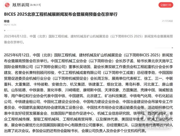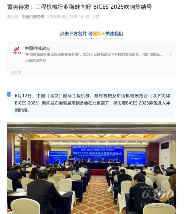 可以预见,在未来16天里,BICES 2025相关新闻将持续升温,从展前预热到现场展出,从深度报道到数据解读,一场行业盛会的传播热潮正在形成。这不仅是对展会本身参与各方的有力支持,更是对工程机械迈向智能化、绿色化、高端化的有力推动。
