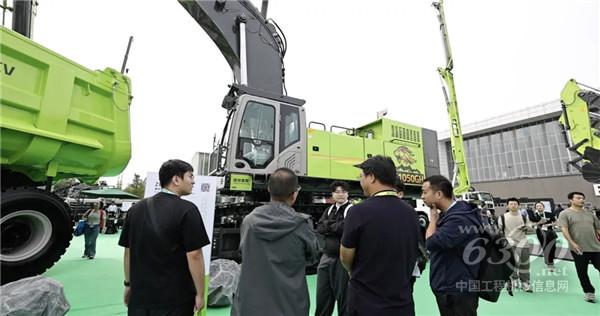 一旁的混合动力矿用挖掘机ZE1050G凭借充满科技感的外形和强悍性能吸引众多观众拍照打卡。ZE1050G采用新一代电液混动系统架构,搭载的新型智能能量管理系统能够动态调节动力输出,动力匹配更精准。此外,电池、电机、电控采用高效智能热管理系统,配合自适应温控策略,轻松应对各种严苛工况,同级别行业最大的8方斗容也为用户提供更加高效的使用体验。尤其是,全球最大混合动力矿用宽体自卸车ZT160HEV与混合动力矿用挖掘机ZE1050G在现场组成新能源“黄金挖卡组合”,向现场观众展示矿山装备绿色驱动新模式,生动彰显出中联重科在矿山绿色装备领域的行业引领地位。