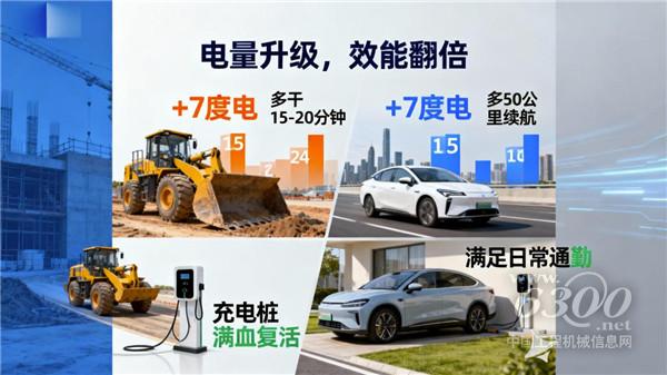 对主流电动汽车而言,每度电约可支持5–8公里的续航;增加7度电,意味着额外获得35–56公里的行驶里程,相当于从容应对从市中心到郊区的通勤距离。而在电动装载机上,这多储备的7度电,则代表每次充满电后可多工作15–20分钟——日积月累,其经济价值不容小觑。尤其在野外作业中突遇电量告急,这7度电,足以让设备开到充电站“满血复活”,持续奋战。
