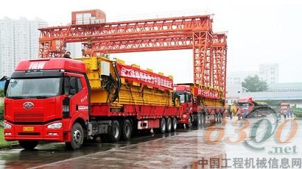 8月25日,九台重型汽车满载着TY900运梁车冒着蒙蒙细雨驶出徐工铁装公司大门,奔赴新疆施工现场。此次TY900运梁车发往新疆是该公司首套提、架、运设备之一,此后,还将有提梁机、架桥机陆续发往新疆,为西部铁路建设再立新功。