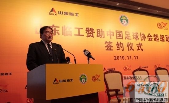 2010年11月11日,江苏常熟见证了中国知名工程机械品牌——山东临工(SDLG)的一次魄力之举,山东临工在此与中国足球运动中心中超公司正式签署了2011赛季中超联赛主赞助商协议,合约期限为三年。这是迄今为止首个也是唯一与中超联赛开展战略合作的工程机械品牌,山东临工由此正式启动了体育营销的品牌推广模式和战略。当天,中国足球运动中心主任韦迪、中超公司总经理郎效农,山东临工执行总裁于孟生,以及全国百余家主流媒体出席了隆重的签约仪式。