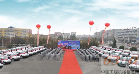 在“2011服务中国行” 的交车仪式上,孟总亲自把“金钥匙”交给了经销商代表刘助民总经理。随后,106台服务车缓缓驶出厂区,现场掌声雷动、礼炮齐鸣,气氛也达到了高潮。此次106台服务车作为更好的支撑用户事业的新生力量,将发往全国各地,全部用于现场服务,为用户提供更加贴心周到的服务和解决问题的方案,进一步树立徐工科技“满足顾客需求、追求顾客感动”的服务理念和品牌。