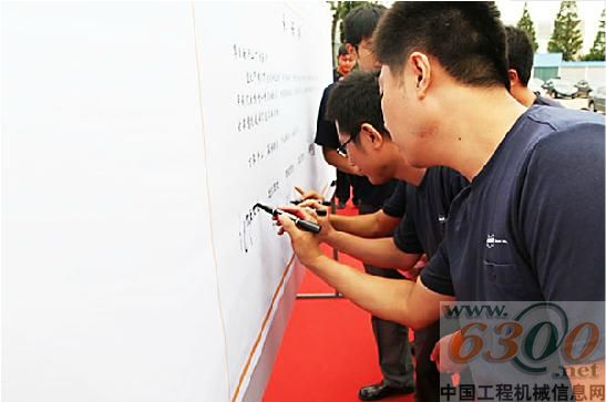 在气势宏伟的感恩活动授旗仪式前,代理商客户服务代表郑重宣誓:将以最热情和精湛的技术,切实做好服务,最大程度提高客户满意度。随后,丁海益总经理给全国六个支社客户服务代表进行授旗,代理商服务人员代表和支社客户服务代表在承诺书上进行了庄严表决。最后,在礼炮声中,10辆服务车辆缓缓驶出厂区,奔赴全国各地,开始此次为期1个月的客户感恩活动。