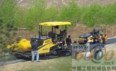 照片中的宝马格摊铺机BF 300 C为中国首台宝马格摊铺机,该机在4月份参与了北京延庆辉煌国际会议度假中心内沥青路面的摊铺工作,并以优异的摊铺质量,良好的可操作性获得了用户及业主的认可和赞誉.