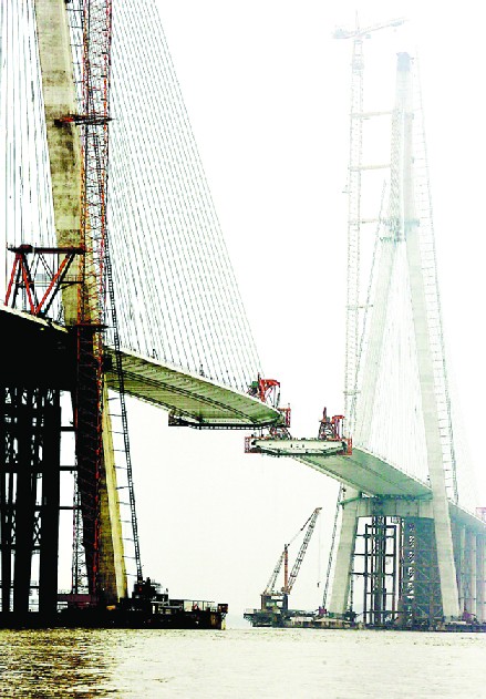 苏通大桥的建成,是中国从桥梁大国向桥梁强国跨越的重要一步。面对奔流不息的长江水,作为苏通大桥建设大军一员的刘先鹏深情地凝视着不远处的大桥,慨叹道:“走向世界强国太需要机械设备行业的现代化作支撑了!”