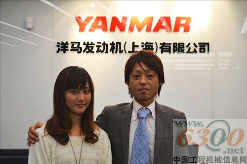 洋马发动机(上海)有限公司藤野晋二先生(右)与中国叉车信息网记者(左)亲切合影