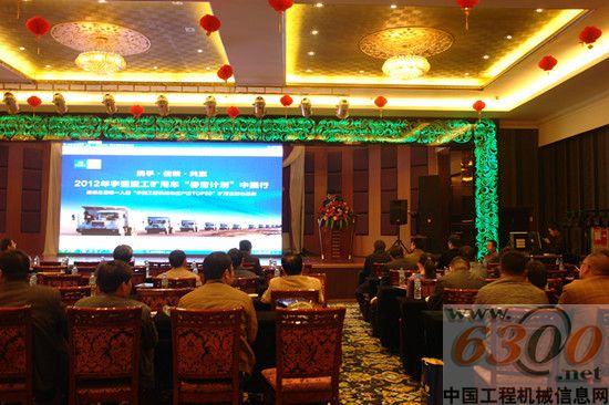 11:00,活动在四楼多功能厅正式开始。到场的近百名客户一一就坐。宇通重工总经理助理、铲土事业部总经理艾昭先生,宇通重工矿用车研究所所长助理刘斌先生,宇通重工矿用车晋北大区经理朱红胜先生出席了本次活动。会议由宇通重工矿用车销售经理李红涛先生主持。