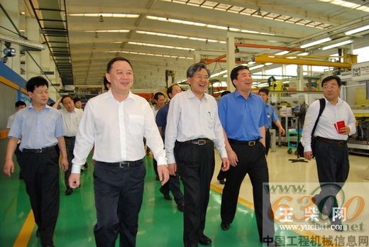 谢国明(前排右三)一行参观玉柴重机装配生产线