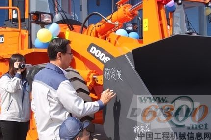 仪式中,DISD康又珪总经理亲自启动首台DL502并驾驶下线,迎接他的是全场热切期待的目光和阵阵掌声,康总还出人意料地一展装载机驾驶技术,伴随着音乐即兴发挥,与其他4台DL501共同做出一组装载机表演动作,场面十分欢乐祥和。之后康总在致辞中表示,DL501/502 Proto 是经过我们研发人员日以继夜的紧张工作,相关部门的密切合作研制的成果。为了能在2012年提升装载机产品的销售,DISD在2011年9月份专门成立了WLO TFT组织,这为加快DISD产品的研发速度,开发出更能满足中国市场需求的产品提供了基础。时隔半年,2款全新机种DL501/502 Proto终于成功下线,再次验证了斗山速度。
