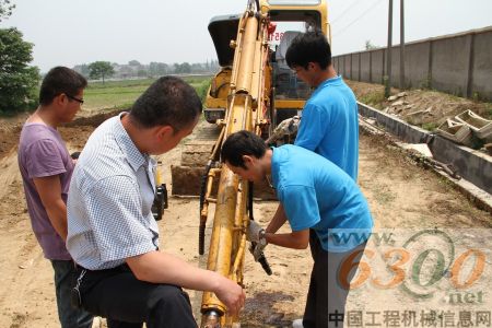 5月27日,玉柴重工常州服务工程师一行驱车拜访常州嘉哲镇用户戴文忠老板,当工程师们见到戴老板时,他的YC60-8还正处于忙忙碌碌的作业中。“你们不用这么兴师动众,我的小挖没出问题,你们不用来这么多人,谢谢你们的关心啦”,当戴老板见到八九个人的服务工程师队伍时,一边上前迎接,一边笑着喊着。据戴老板介绍,嘉哲当地现在发展养蟹业,这台正在作业的YC60-8是自己的第二台玉柴挖机,出活率高、动力强、油耗低,得到了很多工程老板的信任,自己才有机会包揽了很多挖蟹塘类的工程。“2011年11月份,戴老板还介绍了一个同乡也买了一台YC60机,现在工程量也挺多”,随行的常州办事处主任冯乐一边同戴老板聊天,一边和正保养机器的服务人员说着。