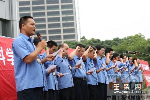 来自发动机二厂的李伟等13名安全员代表郑重宣誓“我的安全我负责”:我们认真遵守公司各项安全管理制度;自觉执行设备安全操作规程;正确穿戴劳动防护用品;不断提高自己安全生产知识,不违章作业、不违章指挥……