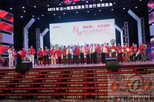 一诺千金。为了表彰在服务万里行活动中做出突出贡献的优秀人员,答谢广大客户和操作手对三一事业的大力支持,晚会现场,来自全国各地的客户、操作手和服务工程师共计90名分别捧回“最佳客户建议奖”、“最佳设备维护奖”、“最佳服务工程师奖”、“最佳操作手奖”、“最佳施工奖”等大奖。