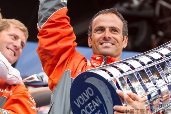 弗兰科卡玛斯接过沃尔沃环球帆船赛总冠军奖杯