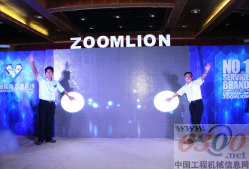 中联重科工程起重机公司服务中心副总经理谢柯(左)、中联重科工程起重机公司甘青营销保障中心总经理王学东(右)共同启动西北区“2012服务品牌全球巡展”