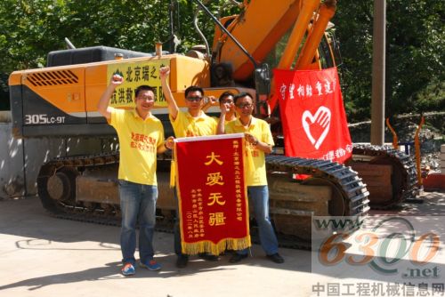 东关上村党支部书记龚进忠及村主任许秀水在致答谢词时表示,在这次抗洪救灾援助过程中,灾后重建难度最大的就是河道的清理工作,如果仅仅依靠人力估计3年也干不完。在危难关头,由北京现代京城工程机械有限公司与北京瑞之岛工程机械设备有限公司联合组建的抗洪救灾志愿队帮助东关上村开展了为期一个月的灾后建设,无偿安排6台大中小型挖掘机和十几位操作手志愿者,每天工作超过10小时,共完成了东关上、三合庄、瓦沟三个村1.5万m河道治理,清理土石45万方,为张坊镇的灾后建设作出了突出贡献。