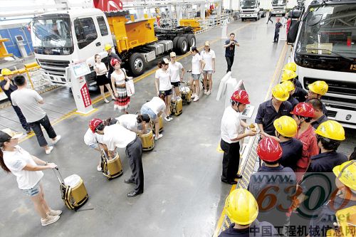 把这么多饮料发到工人手中,也不是件容易的活。三一集团工会联同泵送指导员班、行政总部,与红牛公司的8名美眉组成能量小队,一天跑泵送生产准备部、一天跑结构件部、一天跑总装部……每天把800多瓶红牛送到预定厂房,忙得不亦乐乎。