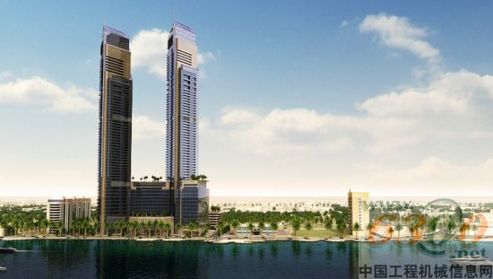 吉达最高建筑物-350米双子塔建设,建筑面积415,00平方米,竣工时间2013年,施工设备型号 托泵BSA 14000 HP-D, BSA 14000 SHP-D, 2x BSA 2110 HP-D and 布料杆MX 32-4 T stationary booms.