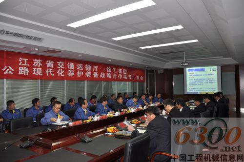 参观结束后,双方就“十二五”公路现代化养护装备战略合作项目展开会晤。杨东升副总裁向游庆仲厅长具体汇报了徐工落实合作项目的相关情况,并详细介绍了徐工养护产品的研发、生产以及市场推广情况。他在报告中指出徐工集团通过建立筑养护设备生产基地,重点研究技术上合理、经济上优化的筑养护产品装备,全面加强公路养护技术的研究、装配和研发制造、推广使用,充分满足全省公路养护所需的施工装备,全力推进江苏省顺利实现公路养护现代化的“十二五”战略目标。同时通过政产学研的紧密合作,形成养护产业的转型升级和创新发展,不断提升企业在筑养护领域内的竞争力。