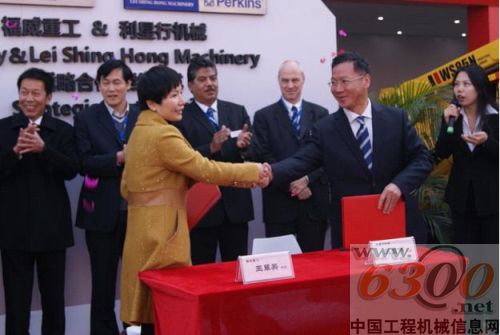 2012年11月27日上午,在bauma China 2012活动现场,英国Perkins(珀金斯)发动机有限公司、香港利星行机械有限公司与浙江福威重工有限公司的战略合作协议签字仪式在福威重工展台隆重举行。福威重工与利星行机械自07年合作以来,在平等互利的原则下,逐步达成了信任、共赢的共识。此次战略合作协议的签订,也将推动福威重工与Perkins、利星行机械在工程机械领域更加长期、稳定的战略合作。签字仪式结束后,中国工程机械信息网对福威重工营销总监王翠英女士、Perkins销售及营销执行总经理雷岸诺(Ennodio Ramos)先生、环球营销总监贝世礼(Nigel Baseley)先生及利星行发动机事业部珀金斯部总经理王宏伟先生进行了采访。