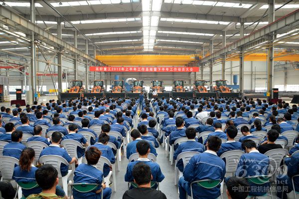 2013年7月6日上午,英轩重工2013年上半年工作总结暨下半年工作动员大会隆重召开,公司全体领导和员工近五百人参加了此次大会,会议现场布置的简洁、大方,一排YX655装载机整齐划一的排列在会场前方,让会议现场充满了生机与力量。英轩控股集团董事长李世勇,英轩重工副总经理余昌辉、张祥平、衣晓明,英轩集团财务总监丁国华,英轩集团总会计师张志英出席会议,大会由英轩重工副总经理张祥平主持。