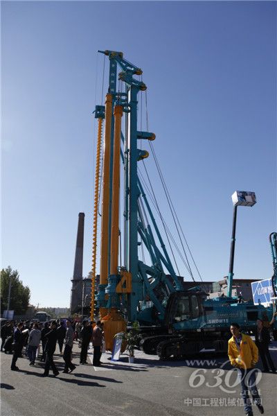 作为本届展会重点推出的长螺旋钻机,同样为山河智能自主研发生产的一款新产品,其动力头采用液压系统控制,扭转力矩高达12吨米,最高转速可达28转/分钟,目前为行业领先。该动力头还可以根据地层强度不同,自动调整转速、扭矩。主机成孔直径可达1.2米,深度可达32米,主卷扬起拔力可以达到80吨,保证设备在施工过程中不会出现卡钻的现象。