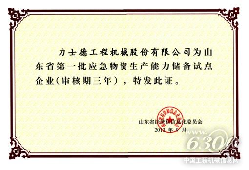 多年来,力士德公司以做国产品牌一面旗帜为发展愿景,采用国际先进技术平台,精益设计,做到高起点、高定位,保持与世界先进技术同步,并建立了完整的生产制造体系、完善的质量保证体系和严格的安全生产体系。通过多年的努力,公司被评为国家高新技术企业、技术装备企业、中国最具竞争力挖掘机品牌等一系列荣誉称号,2012年公司跻身中国工程机械行业制造商30强。