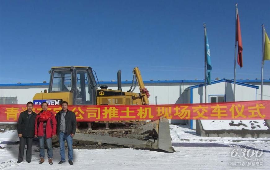 2013年11月1日山工青海代理商公司领导会同山工研发中心技术人员等一行十余人,冒着高原、严寒缺氧,到达海拔4300余米的推土机施工现场----青海木里煤矿盐湖矿区,为山工青海代理商售出的首台推土机SEM816举行了现场交机仪式。