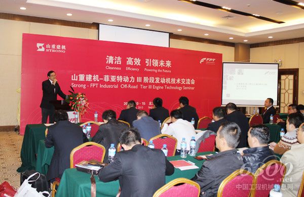 此次会议由山重建机副总经理于永康和菲亚特动力亚太区总经理余宁分别致辞。菲亚特动力亚太区销售总监李响向大家介绍菲亚特集团,带领大家走进菲亚特,之后菲亚特动力产品工程总监戚正刚着重介绍菲亚特动力在挖掘机上的应用,最后山重建机第一研究院技术专家重点介绍山重建机匹配菲亚特动力N45发动机的MC136-9履带式全液压挖掘机产品特点。