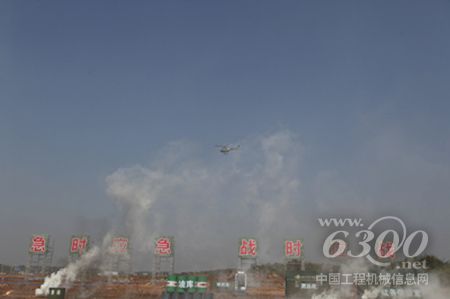 模拟战时实况的动态演习主要包括:“阿若拉”飞机向战地医院急送血浆、飞虎无人直升机/多轴旋翼飞行器侦察战情、智能挖掘机排爆作业、装甲工程车清除路障、大型挖掘机抢修战壕、滑移装载机修复路面等一系列演习项目。 演习现场“硝烟”弥漫,“阿若拉”飞抵战区上空后遭到敌方干扰,飞行员沉着应对,凭借良好的操作技能完成大角度拉起、大坡度盘旋、连续筋斗、横滚等摆脱干扰,成功将血浆送达战区医院……前线战地物资储备库遭到敌方攻击后,8轴旋翼飞行器、“飞虎”无人直升机迅速抵达预定区域实施侦察,并通过传输系统将侦察情况实时传至指挥部,为指挥部提供更多具体情报……智能挖掘机将未爆弹送到引爆区域后成功引爆,危险排除……4台大型挖掘机快速修补战壕……装甲工程车清理路障……滑移转向装载机抢修道路保证机动车通行顺畅……这一系列模拟战况下的演习,体现出了山河智能装备的先进性、可靠性和作为工程机械动员中心应对突发事件的充分准备。