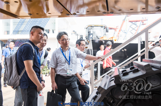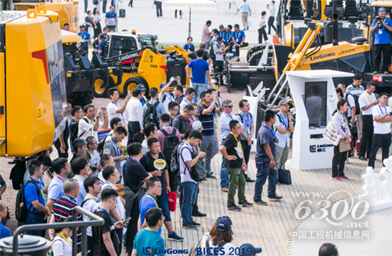 气势磅礴的柳工先进设备,吸引众多展会观众驻足观看