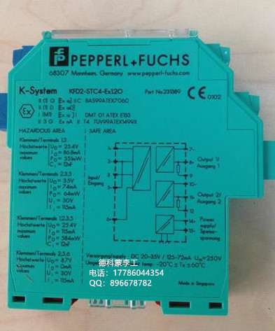 倍加福隔离变送器KFD2-STC4-Ex1.2O 供应德国倍加福隔离栅安全栅KFD2-STC4-EX1.2O 我公司主要经营罗斯蒙特、艾默生、本特利、横河、E+H、山武、萨姆森、倍加福、堪泰、MTL产品,型号不全,可来电咨询。 德科蒙过程控制(武汉)有限公司 联系人:李工 手机:17786044354 传真:027-88068180 Q Q: 896678782 地址:湖北省武汉市武昌区武珞路中南国际城D座1单元901 P+F 隔离栅的优势 轨道供电 大部分隔离栅需要供电 . 当隔离栅使用数量较大时,给隔离栅配电不是一件轻松的工作。为了简化隔离栅的配电, P+F 公司发明了轨道供电方式。其方法是在 DIN 安装轨道中嵌装专用的电源轨道。通过它。将 24VDC 供电配给所有安装在该轨道上的隔离栅。采用轨道供电后,隔离栅的配电就变的简单,易于掌握,不易出错,并且能很方便地实现冗余供电。 可插拔端子 不论是在施工阶段还是日常维护。反复的拆线是一件麻烦且容易出错的事情。采用可插拔端子,就可以有效地避免不必要的重复拆接线。简化工程施工和日常维护的工作量。 KF 系列隔离栅的现场侧端子与系统侧端子用不同颜**分,如果有两组或以上的端子,可通过在端子上设置编码,使用端子组之间不会互相插错。 可实现多种功能 除了信号隔离功能外, P+F 隔离栅还可以实现多种其他的功能,如信号分配,信号转换,报警设定等。 信号分配 当用户需要同时使用两个控制系统或一个控制系统和一个独立的记录或显示装置时需要隔离栅完成信号一进两出功能。 P+F 公司 KF 系列隔离栅中有多款模拟量输入和数字量输入的一进两出隔离栅。对于频率量输入信号。 P+F 公司 KF 系列隔离栅可以输出一个 4-20 mA 信号参与控制,一个频率信号用于记数计量。 信号转换 从简单的 4-20mA 与 1-5V 之间的转换,到热电偶,热电阻与 4-20mA 或 1-5V 之间的转换,还有将频率,电位器等特殊信号转换为 4-20mA 或 1-5V 信号。 报警设定 P+F KF 系列隔离栅有品种丰富的报警设定器。主要有: KFD2-CRG-EX1.D, 4-20mA 输入 , 一路 4-20mA 输出到 DCS/PLC, 两组单刀双掷继电器报警信号输出至 DCS/PLC/ESD, 可通过面板按键组态。 KFD2-GU-EX1, 有源 4-20mA , 1-5V,0-10V 信号;热电偶 , 热电阻信号输入,两组单刀双掷继电器报警信号输出至 DCS/PLC/ESD ,通过 PC 机组态。 KFD2-DWB-EX1.D , NAMUR 或干接点频率信号输入,两组单刀双掷继电器报警信号输出至 DCS/PLC/ESD ,可通过面板按键组态。 产品通用 P+F 所有隔离栅厚度均为 20cm ,产品保持尺寸通用,便于以后升级和更换品种。 定位器 AVP100-H 变送器 EJA438W-EATH2BB-AAZ-99DA/NF1 变送器 3051CD3A22A1AB4M5E5HR5 台 罗斯蒙特 配件 03031-0193-0103 个 罗斯蒙特 温度传感器 0065QC05S0050D0500C06G2 罗斯蒙特 雷达液位计 5401AH1NA3RPVRA 罗斯蒙特 雷达液位计 5402AH1NA3PNABA 罗斯蒙特 雷达显示器 2210 罗斯蒙特 雷达液位计 5402AH2134SPV 罗斯蒙特 雷达液位计 5401AH1NA4RPVBR 罗斯蒙特 雷达液位计 5402AH2I3NANANA 罗斯蒙特 雷达液位计 5408A3SHA1NA1GBZZPAS8M5C1 罗斯蒙特 雷达液位计 5402AH1E54PNACA 艾默生 电磁流量计 8705TSA140C1M0 台 艾默生 电磁流量计 8711SHA040U1Q4 台 艾默生 电磁流量计 8711SSA015R1NA 台 艾默生 电磁流量计 8705TSA005C1M0ND 艾默生 电磁流量计 8705TSA025C1M0ND 艾默生 电磁流量计 8705TSA040C1M0NFB3 艾默生 电磁流量计 8711SSA060M1 台 艾默生 电磁流量计 8711SSA030L1N7 台 艾默生 电磁流量计 8721ASA005XBXN0 台 艾默生 电磁流量计 8732EST1A1N0M4+8705NSE020CHW0N0B3 艾默生 电磁流量计 8732EMT1A1K5M4+8705ASE015SHM0K5B3 艾默生 电磁流量计 8707PSA080C1W0NA 艾默生 电磁流量计 8750WDMT1A1FTHA010CDHZ5M4CM 艾默生 涡街流量计 8800DF005SA1N1D1E3M5 艾默生 涡街流量计 8800DF010SA1N1D1I3M5CM 艾默生 涡街流量计 8800CF005SA1N1D1Q4 艾默生 涡街流量计 8800DF005SA3E1D1K3M5R20 艾默生 涡街流量计 8800DF010SA1N1D1E3M5CM 艾默生 涡街流量计 8800DF020SD3N1D1E3M5 艾默生 涡街流量计 8800DF020SD1N1D1E3M5 艾默生 涡街流量计 8800DF010SA1N1D1I3M5 艾默生 涡街流量计 8800DF020SA3N1D1I5M5R10 艾默生 质量流量计 1700I11ABAHZZZ 艾默生 质量流量计 2700R12BBAMZZZ 艾默生 质量流量计 2700R11DEKMZZX 艾默生 质量流量计 CMFS150M341N2BAMKZZ 艾默生 质量流量计 2700C12AGPMZZZ 艾默生 质量流量计 1700I11ABAEZZZ+F050S114SCAAEZZZZ 艾默生 质量流量计 CMFS010M313N2BAMCZZ 艾默生 质量流量计 1700I11ABFMZZZ 艾默生 质量流量计 1700R11ABAEZZZ 艾默生 无线适配器 775DX21I5WA3WK9-RF 艾默生 分析仪 8-0108-0002-EPA 艾默生 分析仪 8-0102-0003-ISO 艾默生 分析仪 400VP-12 台 艾默生 分析仪 396P-01-10-55 艾默生 分析仪 396P-02-12-55 艾默生 分析仪 499ATRDO-54 艾默生 分析仪 499AD0-54 艾默生 分析仪 3900-01-10 艾默生 分析仪 3900-02-10 艾默生 分析仪 24281-00 台 横河 流量计 DY100-NALSS4-0N+DYA-D0N 横河 流量计 DY050-NALSS4-0N+DYA-D0N 横河 流量计 AE14-DA1O/ECG 横河 流量计 AXF050C-E2AP1N-BD21-01B/NF2/CH 横河 流量计 AE14-DA1J/ECG 萨姆森 定位器 3730-31000000400000000.01 萨姆森 定位器 3730-31000000400000009.03 萨姆森 定位器 3730-31000000400000000.03 萨姆森 定位器 3730-30001000400000000.01 萨姆森 定位器 3730-31001000400000009.03 萨姆森 定位器 3725-0000000000.00 费希尔 定位器 DVC6200 费希尔 定位器 DVC6030 费希尔 定位器 DVC6020 罗斯蒙特 液位计 2120C1DR1NABD 罗斯蒙特 液位计 2130DA9ES9NNNA00001NA 罗斯蒙特 液位计 2120D1BG1NAAA0000 罗斯蒙特 变送器 2088G3S22A2M5B4E5T1Q8HR5 罗斯蒙特 变送器 2088G4S22A2M5B4E5T1Q8HR5 罗斯蒙特 变送器 2088G2S22A2M5B4E5T1Q8HR5 罗斯蒙特 变送器 2088G4S22A1B4E5HR5 