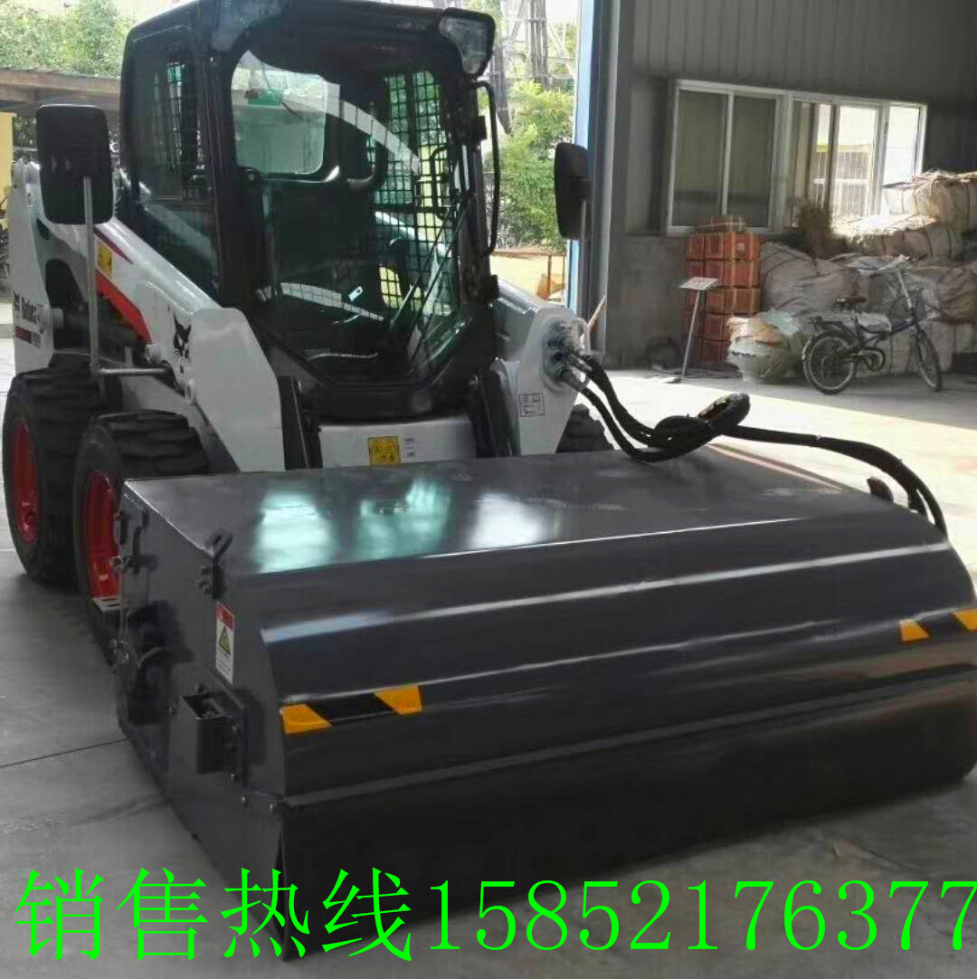 该附具可以安装在滑移装载机、装载机等机器上,清扫、装和倒垃圾,可以用于公路,高速公路大修、建筑、工业和市政工程。 产品优势及适用领域: 1.清扫装置加铲斗,清扫、收集物料垃圾,一次完成; 2.全封闭、扬尘小,静液压驱动、进退双向作业,效率高; 3.适合清扫跑道、道路、货场、仓库、停车场; 4.该产品可配套大型铣刨机作业,替代了传统大量人力低效,不安全的清扫方法, 清扫大型铣刨机铣刨后嵌入或附着在铣刨层上的松动残留沥青颗粒, 将其 从表层"挖" 出, 并收集和装车。