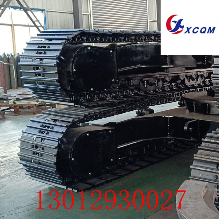履带底盘分类及结构特点: 公司生产的履带底盘分为钢制履带底盘和橡胶履带底盘两大类产品,钢制底盘承载能力在2吨—120吨之间,橡胶底盘承载能力在1吨—12吨之间,根据不同主机设备工作需求,如履带板宽度,底盘总长度,底盘总宽度及底盘以上配套件都可以根据用户需要进行灵活多变特殊设计制造。 钢制履带底盘结构性能特点: 1.支承主机重量,具有前进、后退、转弯行走之功能; 2.钢制履带采用日本技术生产的建筑机械型,承载能力强、牵引力大、噪音低,具有良好的行驶性能。可加装橡胶履带板,避免伤及柏油路面; 3.单、双速行走马达总成自由选择,输出扭矩大、行走速度快; 4.底盘钢架结构强度高、刚性好,利用激光切割、数控折弯加工; 5.支重轮、导向轮采用深沟球轴承,一次性加黄油润滑,免使用中维护和保养加油; 6.轴端双密封结构,保证润滑油密封不外漏,并能防止泥水进入轮腔; 7.支重轮,导向轮、驱动轮齿采用合金钢并经淬火处理,耐磨性好,使用寿命长; 8.弹簧涨紧机构采用螺杆调节,可靠性高。 橡胶履带底盘结构性能特点: 多适用于小型轻工业和小型工程机械行业。轻工业一般是1吨到4吨以内的农用机械。工程机械行业则多用于小型钻探行业。 其作业环境的选择大致如下: (1)橡胶履带的使用温度一般在-25~+55℃之间。 (2)化学药品、机油、海水的盐份会加快履带的老化,在这样的环境下使用后要清洗履带。 (3)有锐利突起(如钢筋、石块等)的路面会导致橡胶履带外伤。 (4)道路的边石、车辙或凹凸不平的路面会导致履带边缘接地侧花纹产生裂纹,这种裂纹未伤及钢丝帘线时可以继续使用。 (5)砂砾、碎石路面会造成与承重轮接触的橡胶表面早期磨损,形成小裂口。严重时水分侵入,造成芯铁脱落、钢丝断裂。