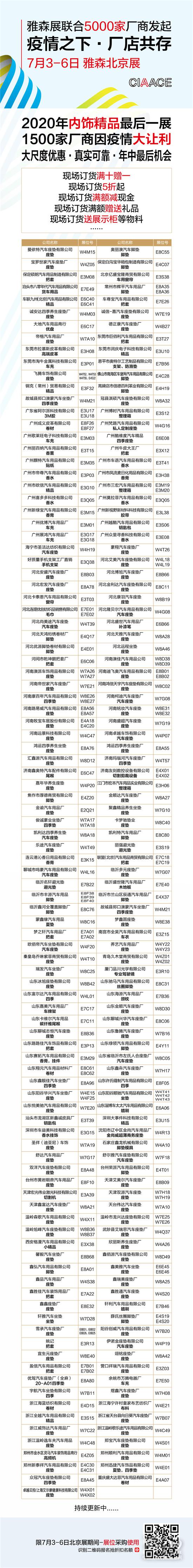 关注“CIAACE雅森展”公众号可报名参观及查看报名信息(7月3-6日雅森北京展)。本次参与因疫情大让利的展商如下: