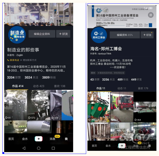 抖音平台,作为目前最火的短视频渠道,郑州工博会深入短视频领域,打造了“制造业那些事”行业大号,总粉丝数3754人,累计视频浏览量近60万,以及数个展会类专属IP账号,目前已吸引了机床、自动化、汽车、机加、医疗器械、3C电子等行业专业人士关注。同时展会也会不定期举行各类直播活动,为企业推广打开短视频新方式。