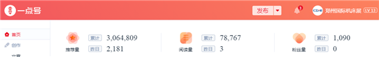 目前郑州工博会3个一点资讯账号总粉丝数3115人,累计覆盖行业人群近720万,我们一直在,只等你来......