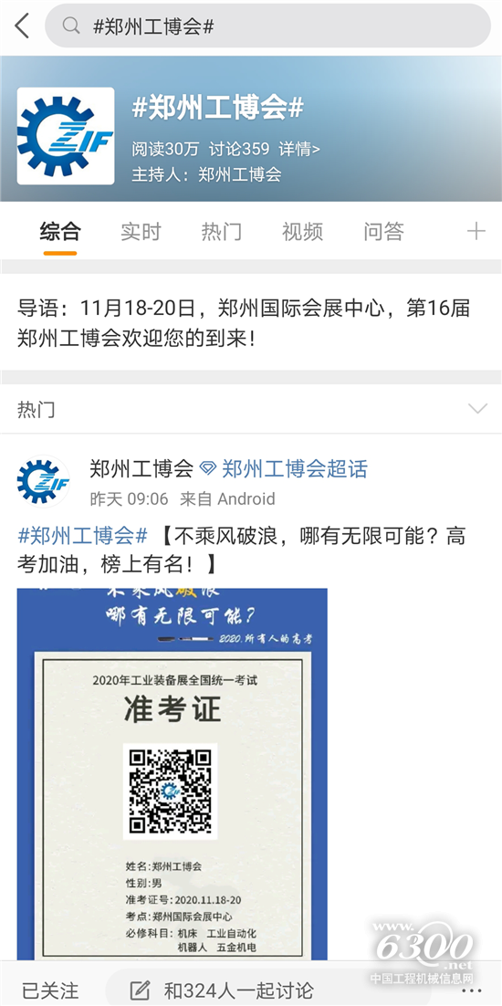 郑州工博会新浪微博主做话题运营,#郑州工博会# 话题目前总阅读量30万,文章总覆盖人群达50万,#郑州工博会# 超级话题社群也已经创建完成,将获得更大曝光量、更精准的互动交流渠道......