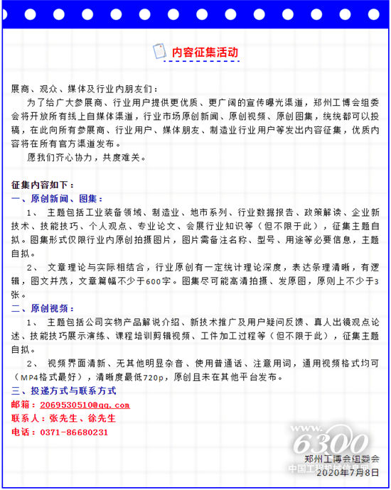 郑州工博会、郑州工业自动化展、郑州机床展微信公众号,作为展会官方发声平台,最全的展会资讯、市场资讯,关注一波不走丢。