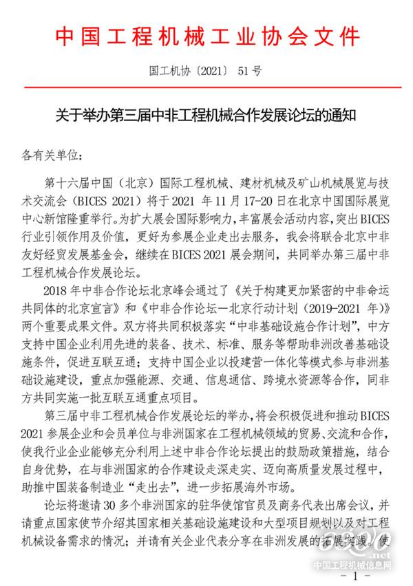 关于举办第三届中非工程机械合作发展论坛的通知