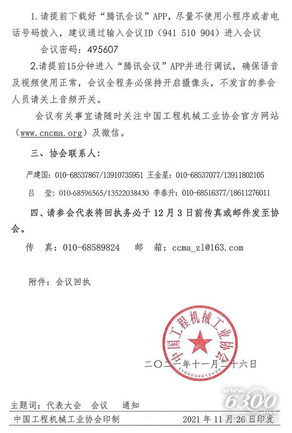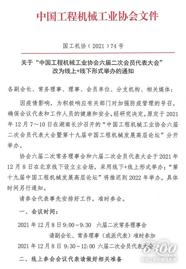 关于“中国工程机械工业协会六届二次会员代表大会”改为线上+线下形式举办的通知