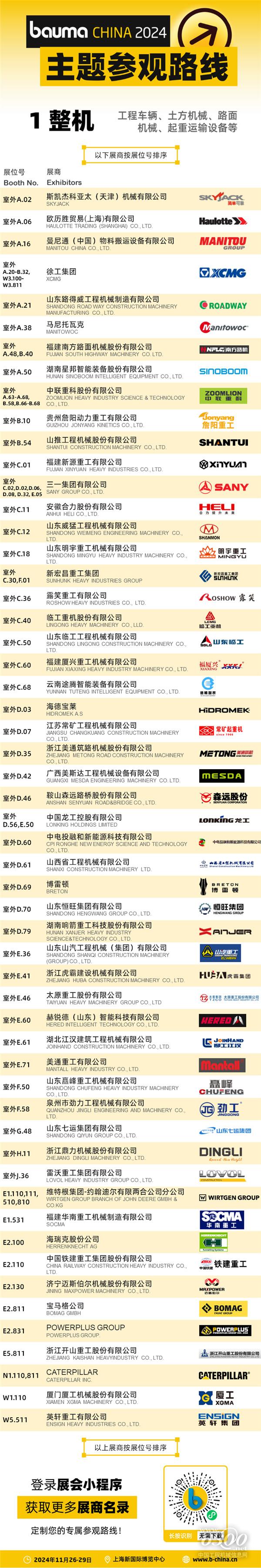 云集国内外工程车辆、土方机械、路面机械、起重运输设备等标杆参展商