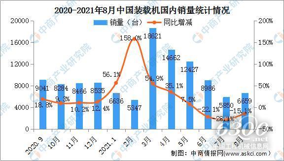 据中国工程机械工业协会对22家装载机制造企业统计,2021年8月销售各类装载机9045台,同比下降6.32%。其中3吨及以上装载机销售8202台,同比下降8.93%。总销售量国内市场销量6659台,同比下降15.1%;出口销量2386台,同比增长31.4%。