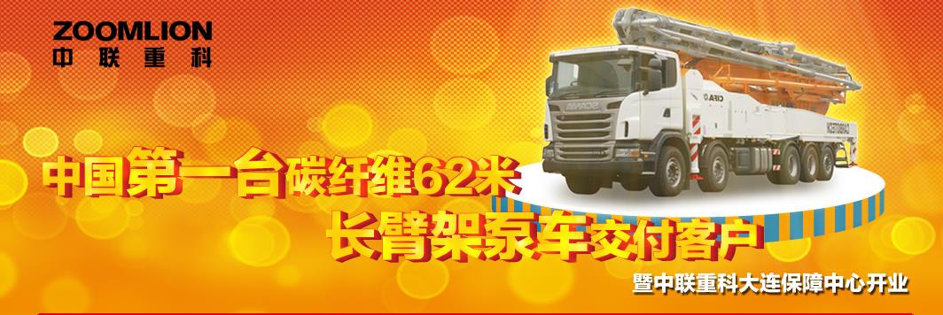 中联重科第一台碳纤维62米长臂架泵车成功..